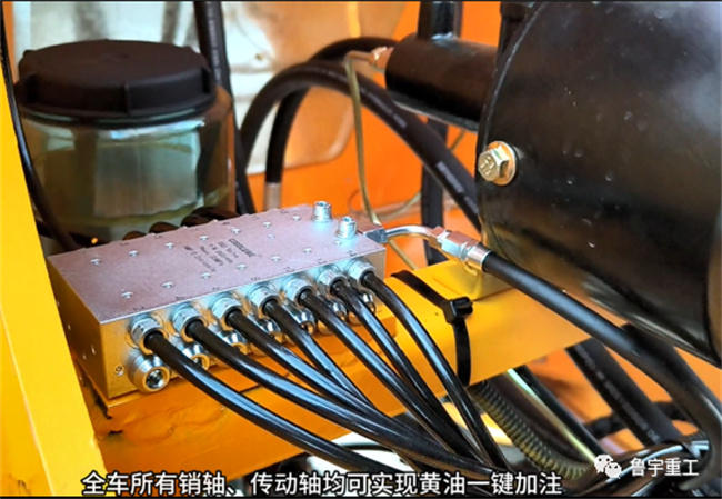 全車所有銷軸、傳動軸均可實現(xiàn)黃油一鍵加注。黃油機材質(zhì)堅固耐用,省時省力。